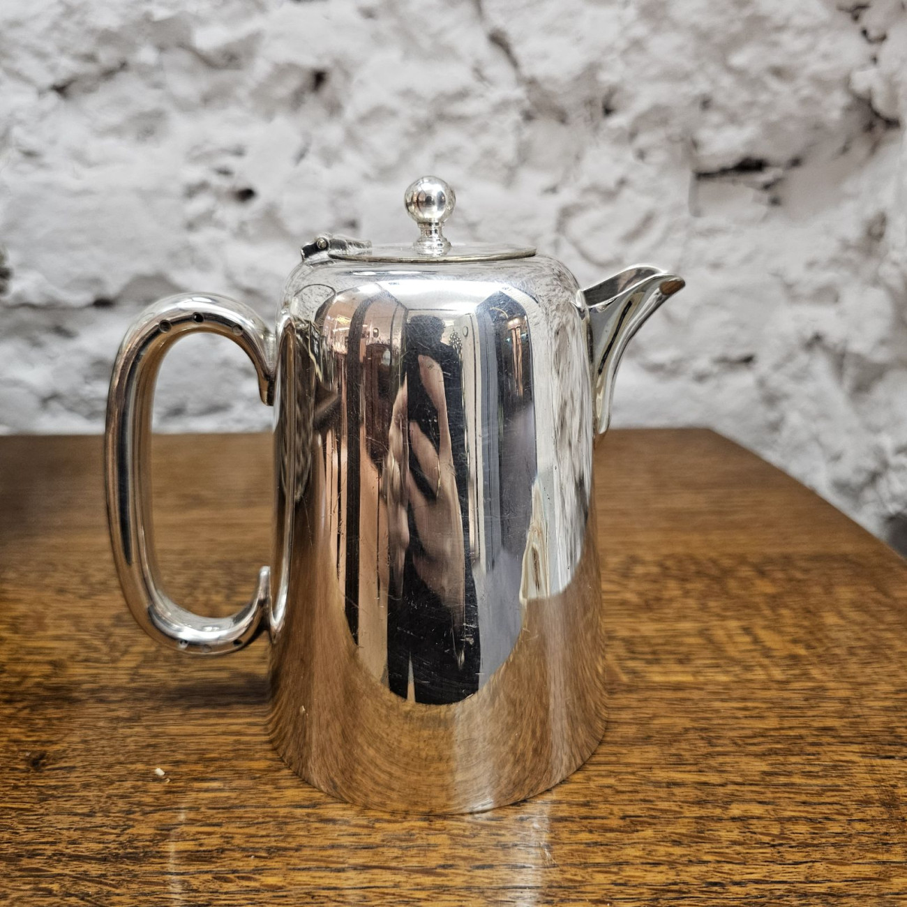 Progettata per l’uso quotidiano nelle strutture alberghiere, questa caffettiera è ancora perfettamente utilizzabile ed è un bellissimo esempio di Sheffield plate del periodo prebellico: robusta, resistente e di grande presenza scenica.