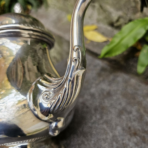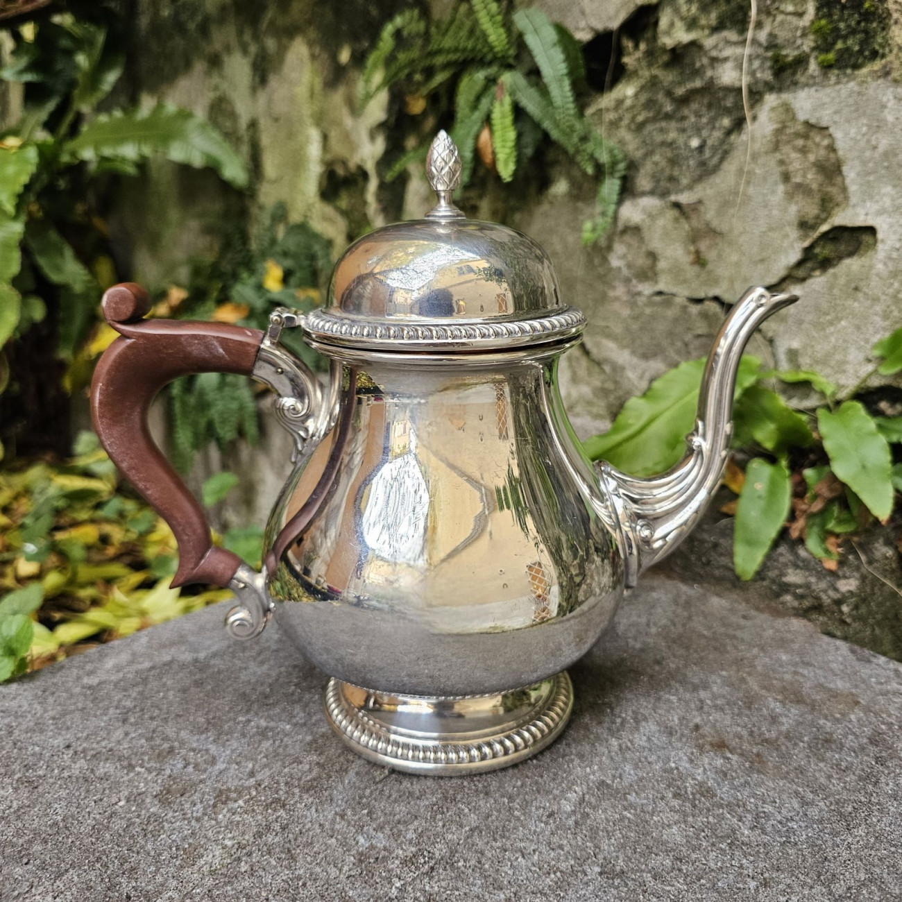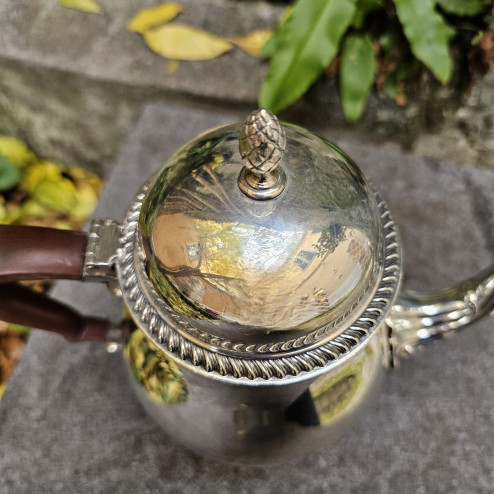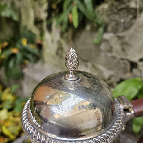 Teiera inglese in Sheffield plate, realizzata negli anni ’60 dalla storica manifattura Barker Ellis, nota per la qualità delle sue lavorazioni argentate e per l’inconfondibile gusto classico.