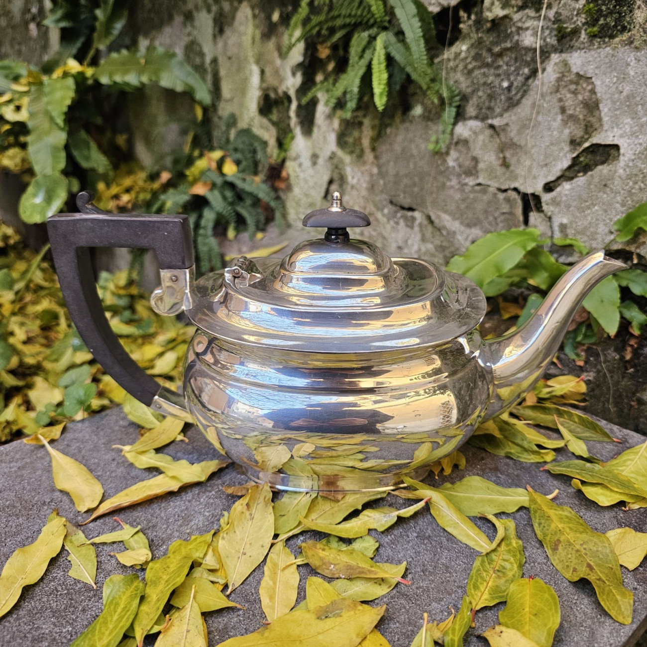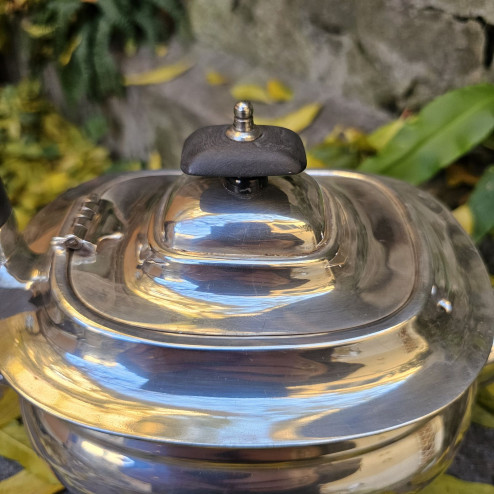 Questa raffinata teiera inglese in Sheffield plate è un esempio di eleganza funzionale della produzione britannica tra inizio Novecento e periodo Edwardiano.