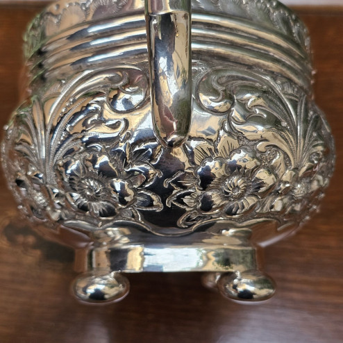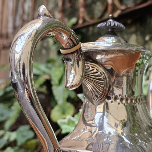 Raffinata caffettiera inglese in Sheffield plate, realizzata nella seconda metà del XIX secolo, esempio di alta produzione vittoriana sia per qualità esecutiva che per valore storico.