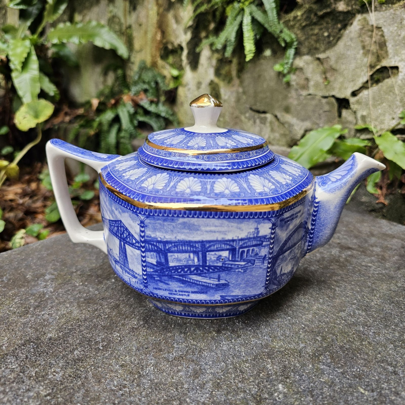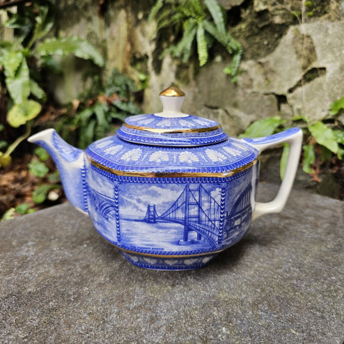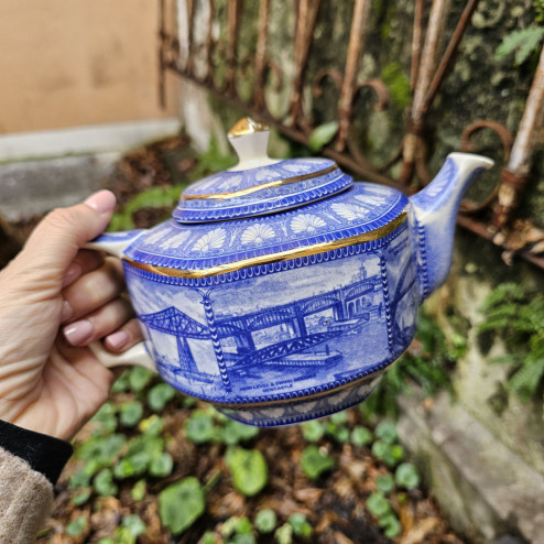 Teiera in ceramica inglese vintage Wade Ceramics per Ringtons LTD, serie Bridges. Decorazione ispirata ai ponti inglesi. Ottime condizioni.