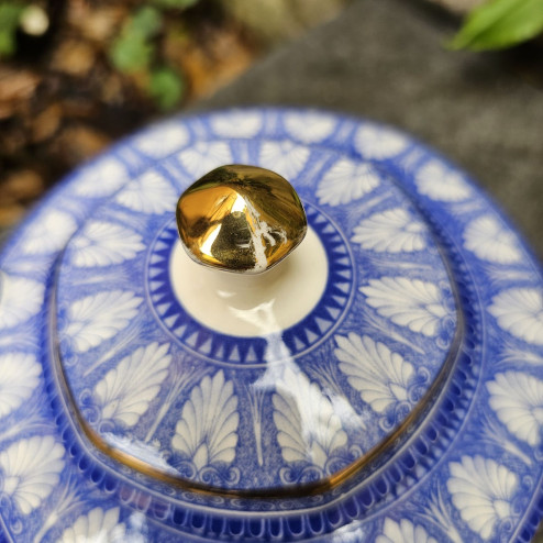 Le condizioni sono ottime, senza sbeccature, crepe o restauri, e con decorazione perfettamente conservata, tranne alcuni graffi sul pomello dorato (vedi foto)