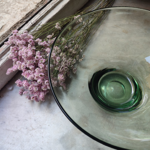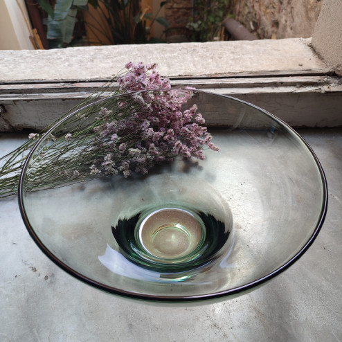 Grande coppa in vetro soffiato verde .