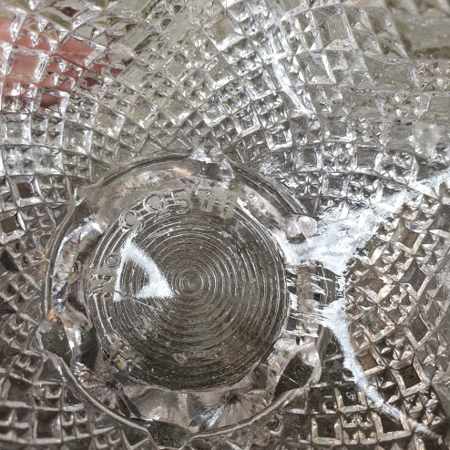 Questa coppetta è uno dei tanti tipi di contenitori in vetro pressato realizzati a con la tecnica della pressatura del vetro, diventati ampiamente disponibili e popolari nel XIX secolo.