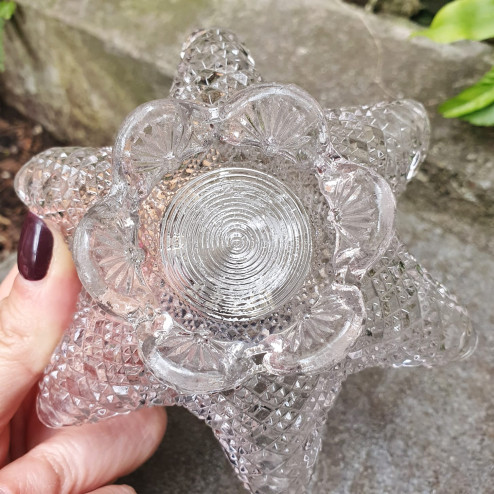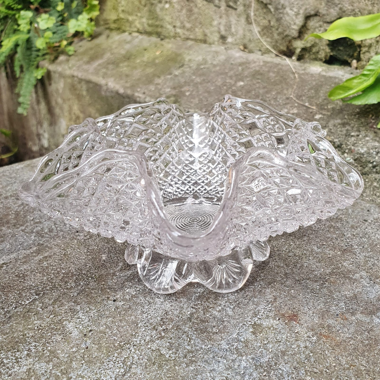 Graziosa coppetta in vetro pressato inglese, prodotta alla fine dell'Ottocento da J. Stembridge & Co.