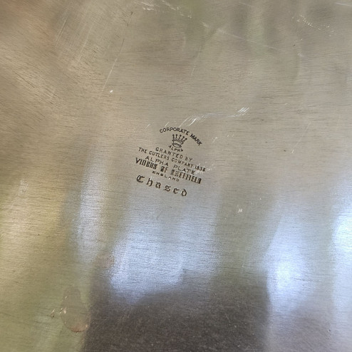 Salver inglese in sheffield plate prodotto negli anni '50.