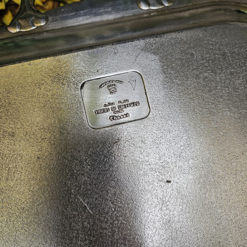 Vassoio inglese in sheffield plate anni 30–40, firmato Viners of Sheffield, con bordo a balaustro mosso e manici integrati. Ottime condizioni.