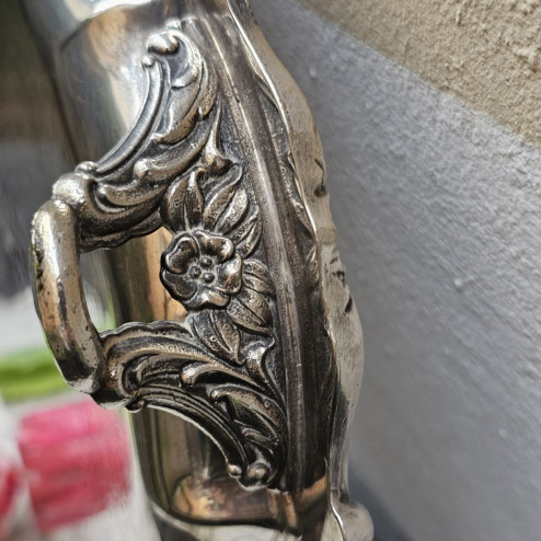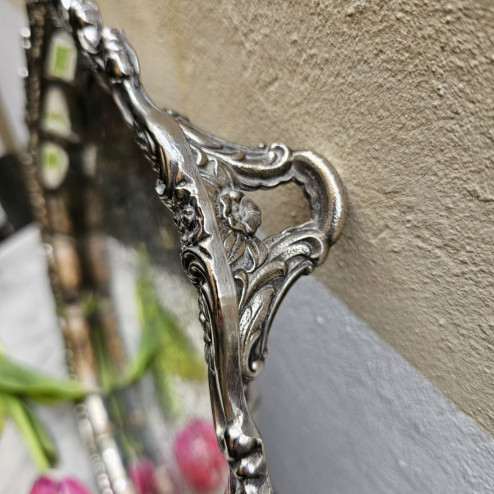 L’argentatura mostra alcuni segni del tempo e dell’uso, coerenti con l’età dell’oggetto e con la natura del materiale, senza compromettere l’impatto estetico complessivo. Si tratta di un vassoio molto pesante e importante, ideale come centrotavola, per l’allestimento di una tavola elegante o come elemento decorativo d’arredo.