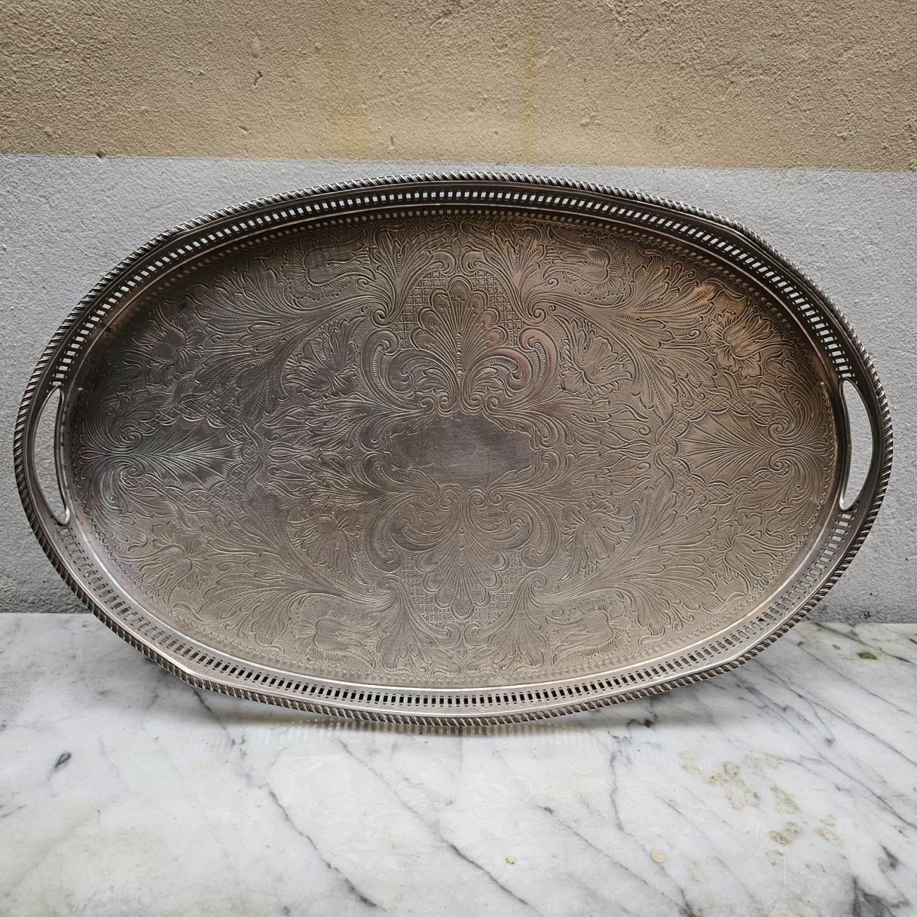 Vassoio ovale in Sheffield Plate prodotto in Inghilterra negli anni ’30.