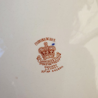 Set di 3 vassoi inglesi in ceramica prodotti da S.Hancoock & Sons per la serie Coronaware: i vassoi hanno numero di registro del 1917.