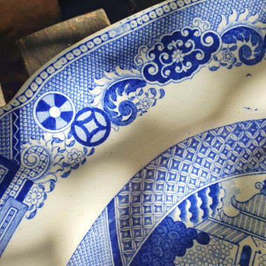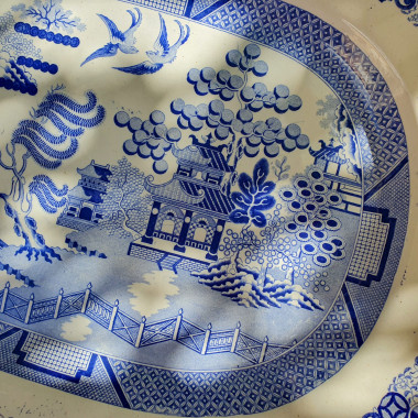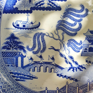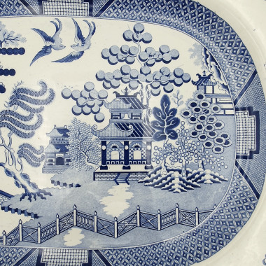E' uno dei primi esempi di realizzazione del celebre decoro Willow: il disegno, realizzato in un bel blu brillante, è ricco e dettagliato, e racchiude tutti gli stilemi tipici di questo decoro.