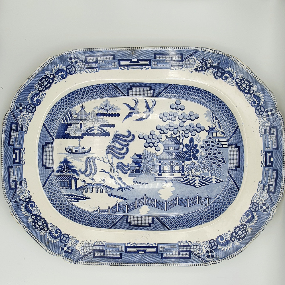 Grande vassoio in ceramica inglese blue e white risalente al 1830 circa.