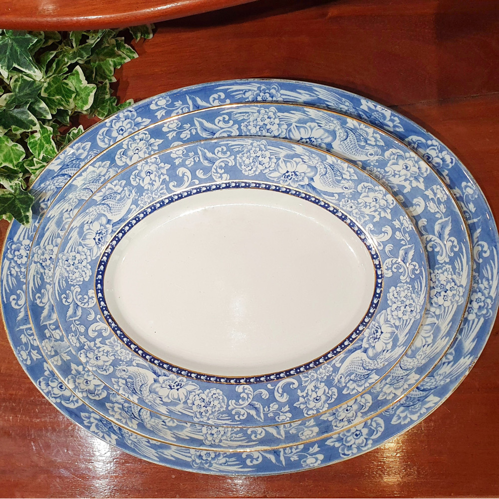 Set di 3 vassoi ovali, inglesi, prodotto da Arthur J. Wilkinson, famosa manifattura di ceramica situata nello Staffordshire. Per questa fabbrica lavorò anche la famosa designer Clarice Cliff.