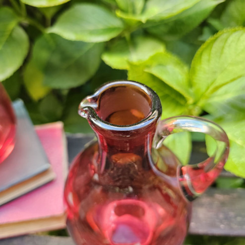 Il vetro Cranberry, conosciuto anche come Gold Ruby, è uno dei più affascinanti vetri colorati della storia: la sua caratteristica tonalità rosso-violacea si otteneva aggiungendo sali d’oro alla pasta vitrea, che veniva poi soffiata o stampata. Questa tecnica, già nota in epoca antica, conobbe il suo massimo splendore nell’Inghilterra vittoriana.
