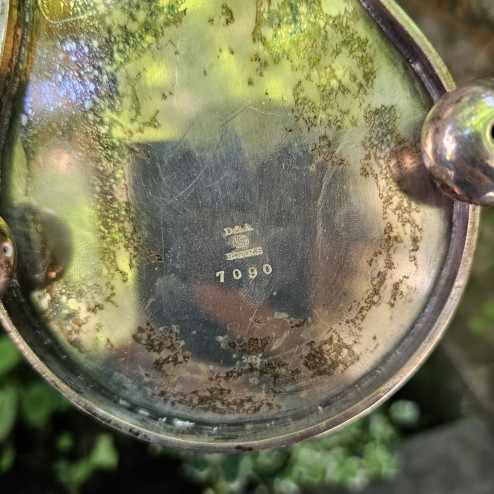 Lo stand reca il marchio di Daniel & Arter, importante manifattura di Birmingham specializzata in oggetti in sheffield plate e silver plate, attiva tra fine Ottocento e inizio Novecento.