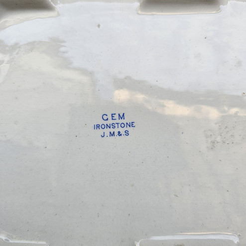 Sul fondo è presente il marchio stampato “C.E.M. Ironstone J.M.&S.” riconducibile alla produzione della manifattura John Meir & Son, attiva nello Staffordshire nella seconda metà del XIX secolo.