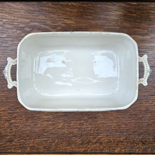 La legumiera è realizzata in ironstone, materiale particolarmente apprezzato in epoca vittoriana per la sua robustezza e per la capacità di mantenere nel tempo compattezza e brillantezza.